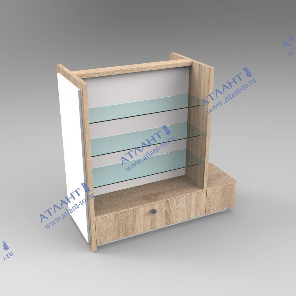 Тумбы высотой 300мм, три накопителя с откидными дверками с ручками (скоба хром), возможна установка замков.